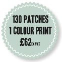 Prices are based on a white patch with a stock colour print. You can have multiple designs at no extra charge (contact us for details). All prices are excluding VAT (multiply the total by 1.2 to get the price including VAT).